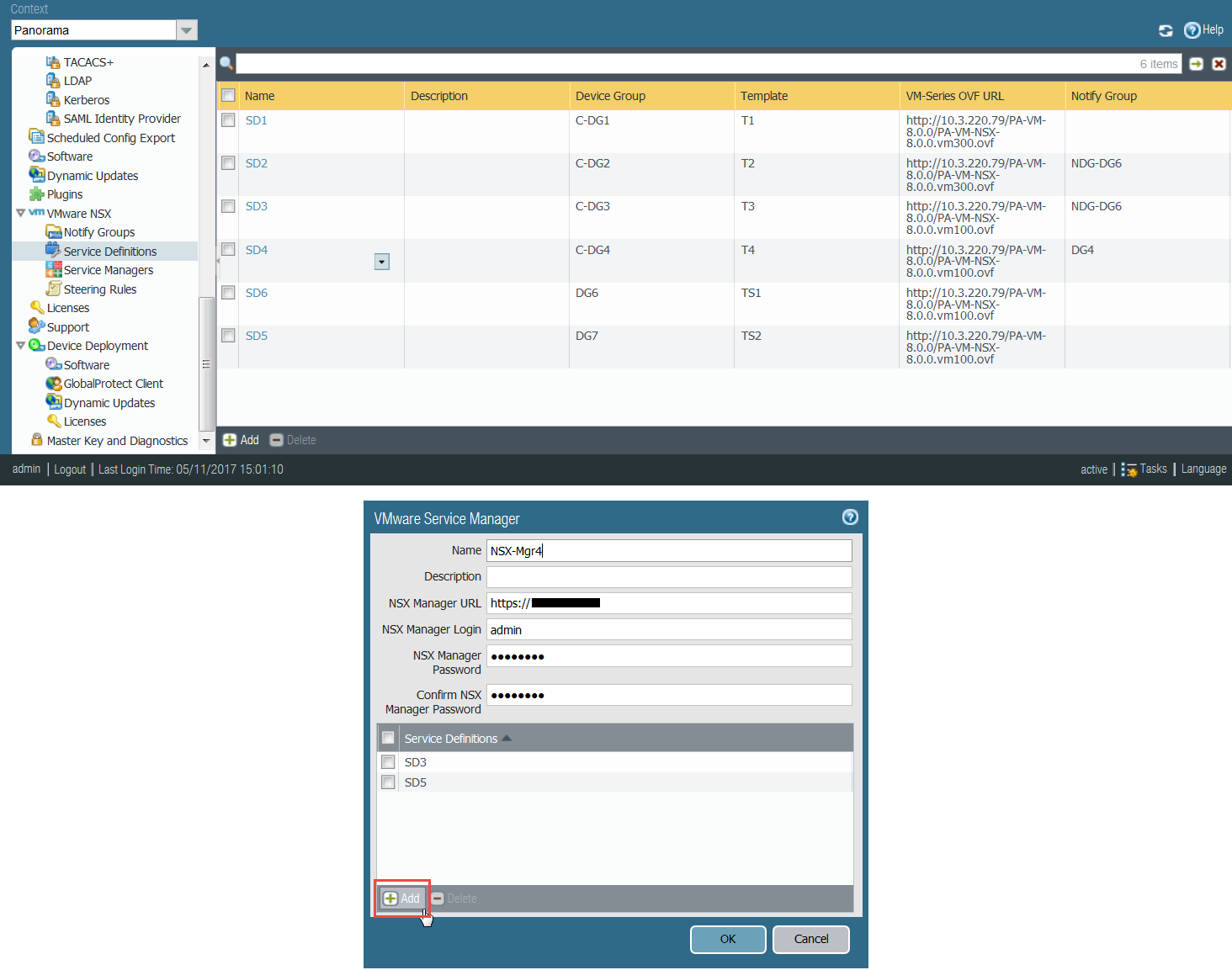 - Select PanoramaVMwareNSX-VService Managers and click Add.