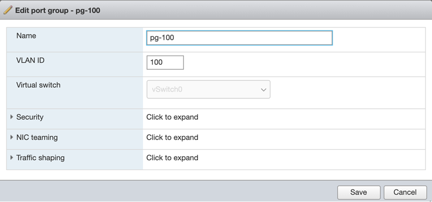 - Click Networking in the VMware Host Client inventory and click Port groups.