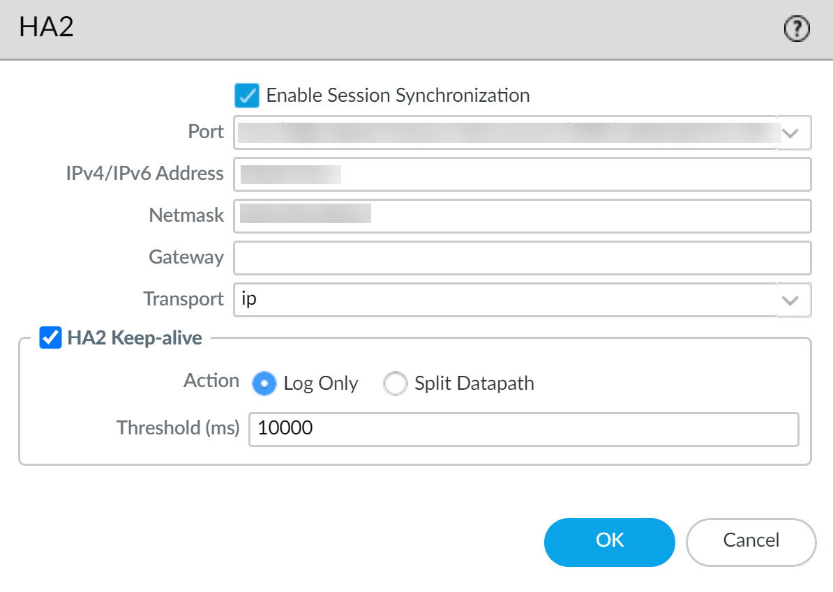 1. Select DeviceHigh AvailabilityGeneral, edit the Data Link (HA2) section.