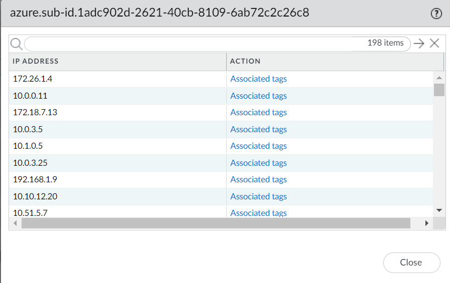 address of Azure resources and the associated tags. For a list of