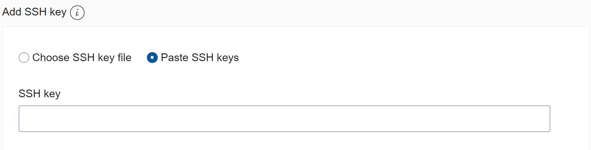 - Under Add SSH Key, select Paste SSH Key.Paste your SSH key into the field provided.