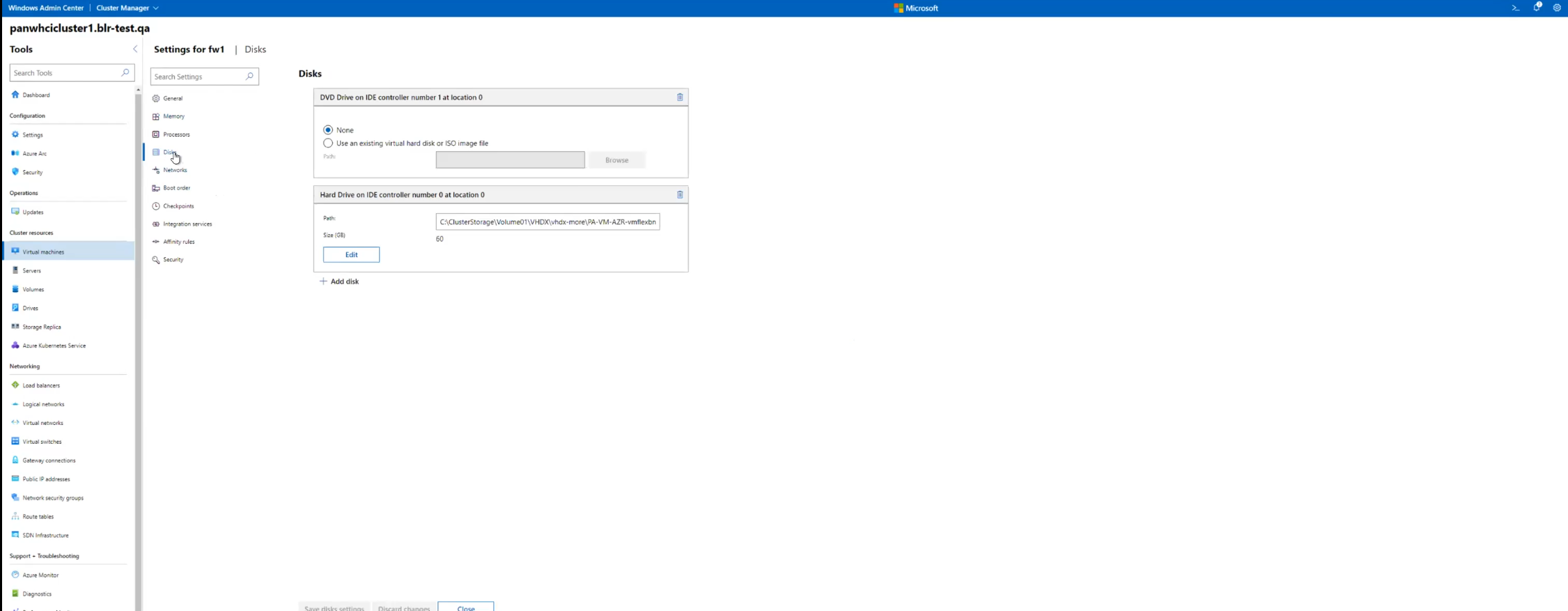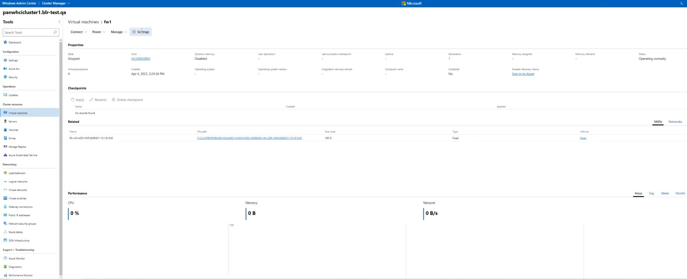 2. Select HCI Cluster and go to Virtual Machine > Settings.
