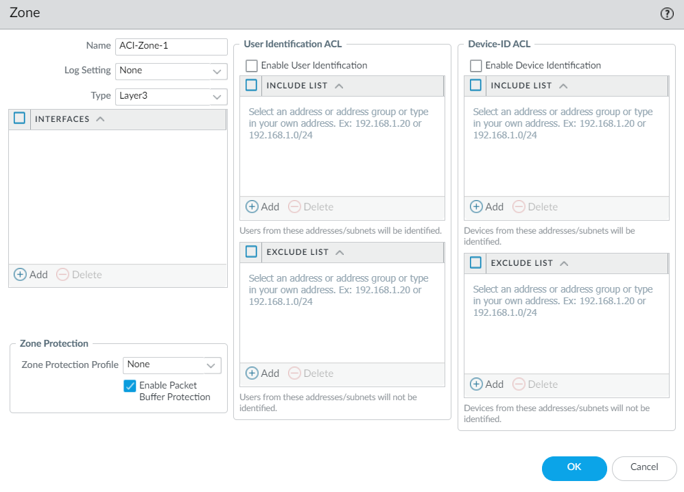Select NetworkZones and click Add.Give the zone a descriptive Name.Choose Layer 3 from the Type drop-down.Click OK.