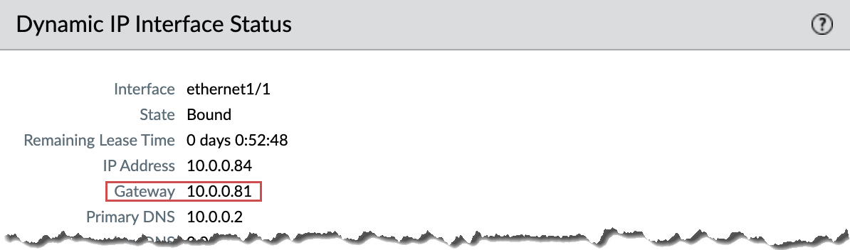 - For Next Hop, select IP Address and enter the IP address of the gateway of the trust interface. You can find the gateway IP address on NetworkInterfacesEthernetDynamic-DHCP Client.