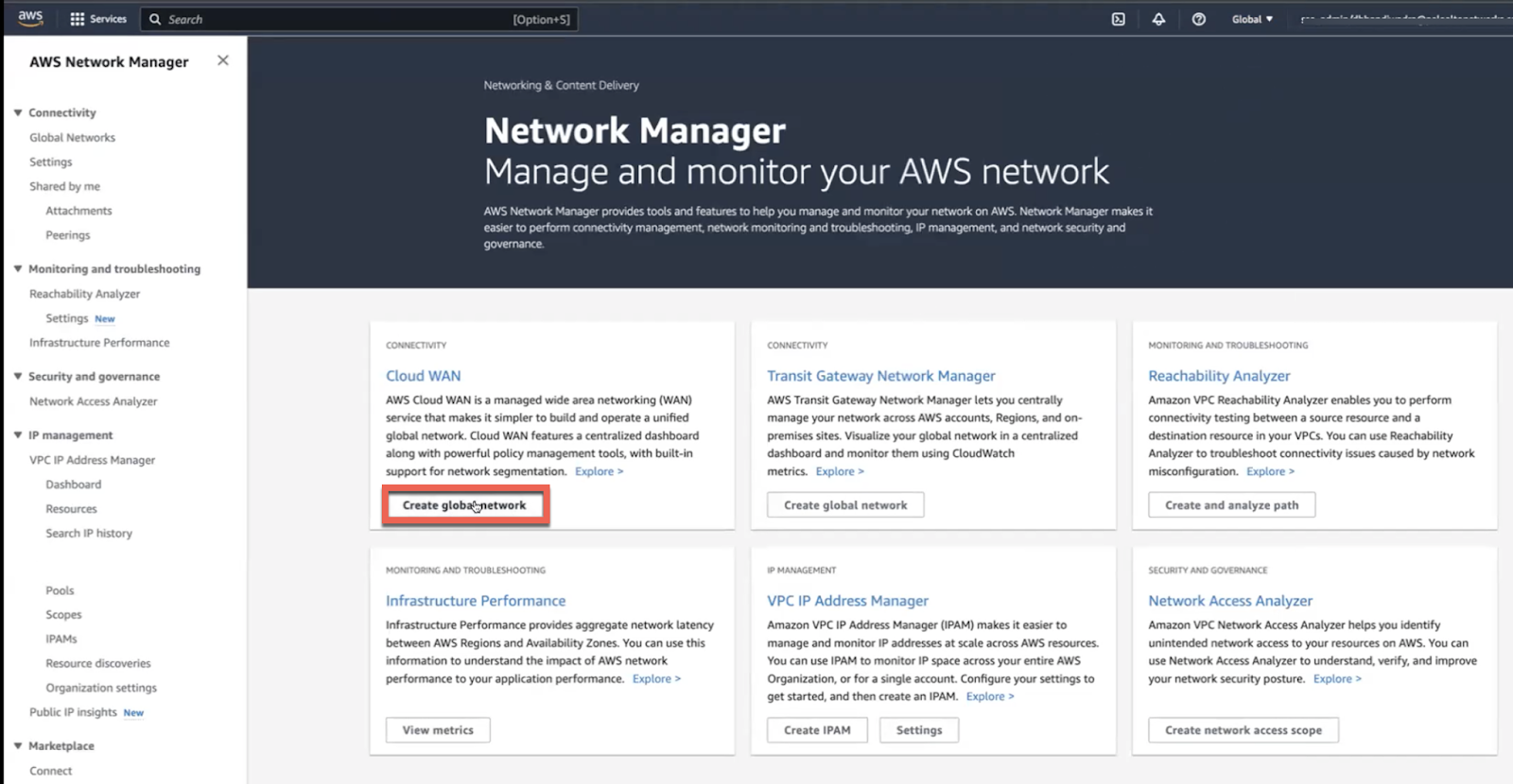 Cloud WAN helps with connectivity within AWS through AWS Network Manager, an interface
