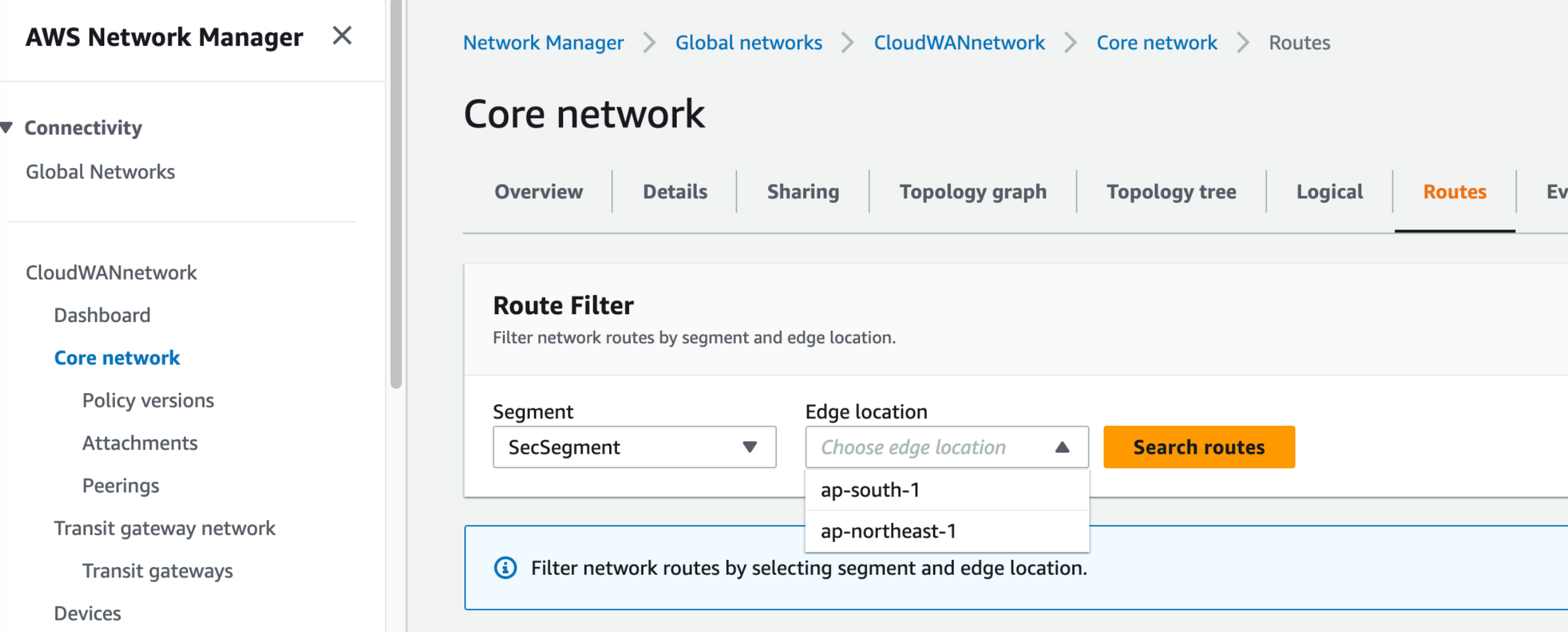 policy.Use the AWS Cloud WAN console to create a core network policy version following these tasks: