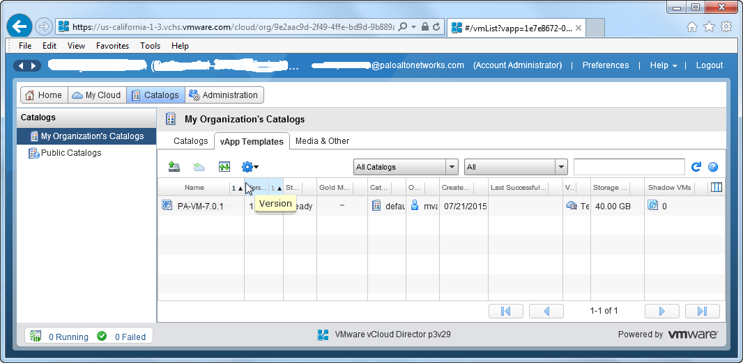 1. Obtain the VM-Series OVA image from the Palo Alto Networks Customer Support web site; the vCloud Air Marketplace does not host the software image currently.