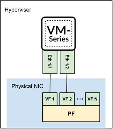 physical NICs, and the VM-Series firewall uses VF drivers to talk