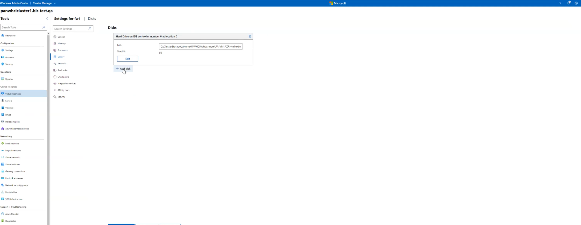 - Log in to Windows Admin Center.Select HCI Cluster and go to Virtual Machine > Settings.