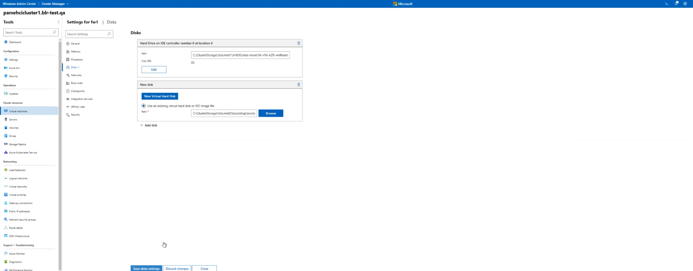 For more information on steps to bootstrap the VM-Series firewall on Azure Stack HCI, see Bootstrap the VM-Series Firewall on Hyper-V with an ISO.Click Save Disk Settings.If IDE Controller 0 is at location 0, the bootstrap ISO must be under IDE Controller 0 at location 1