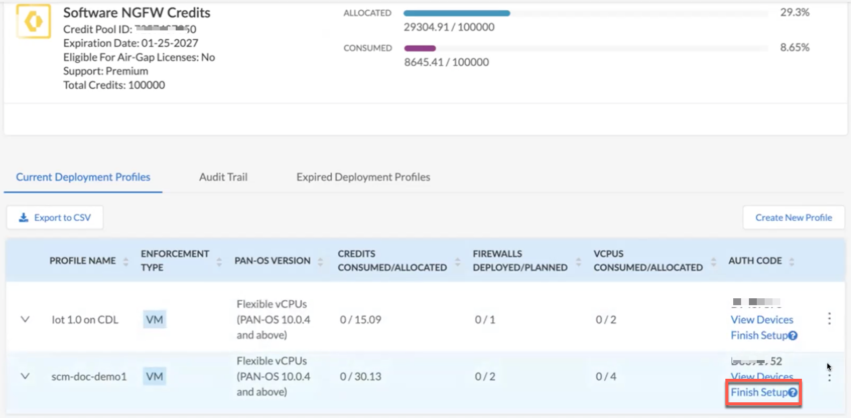 - Register the VM-Series Firewall (Software NGFW Credits)