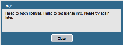 If you see an error that reads Failed to fetch licenses. Failed to get license info. Please try again later or a generic communications error message displays.
