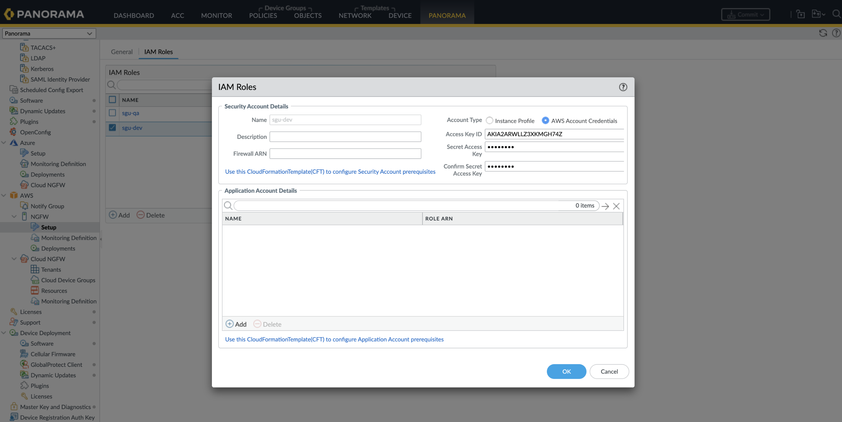 - In panorama, go to AWS > NGFW > Set Up > IAM Roles.