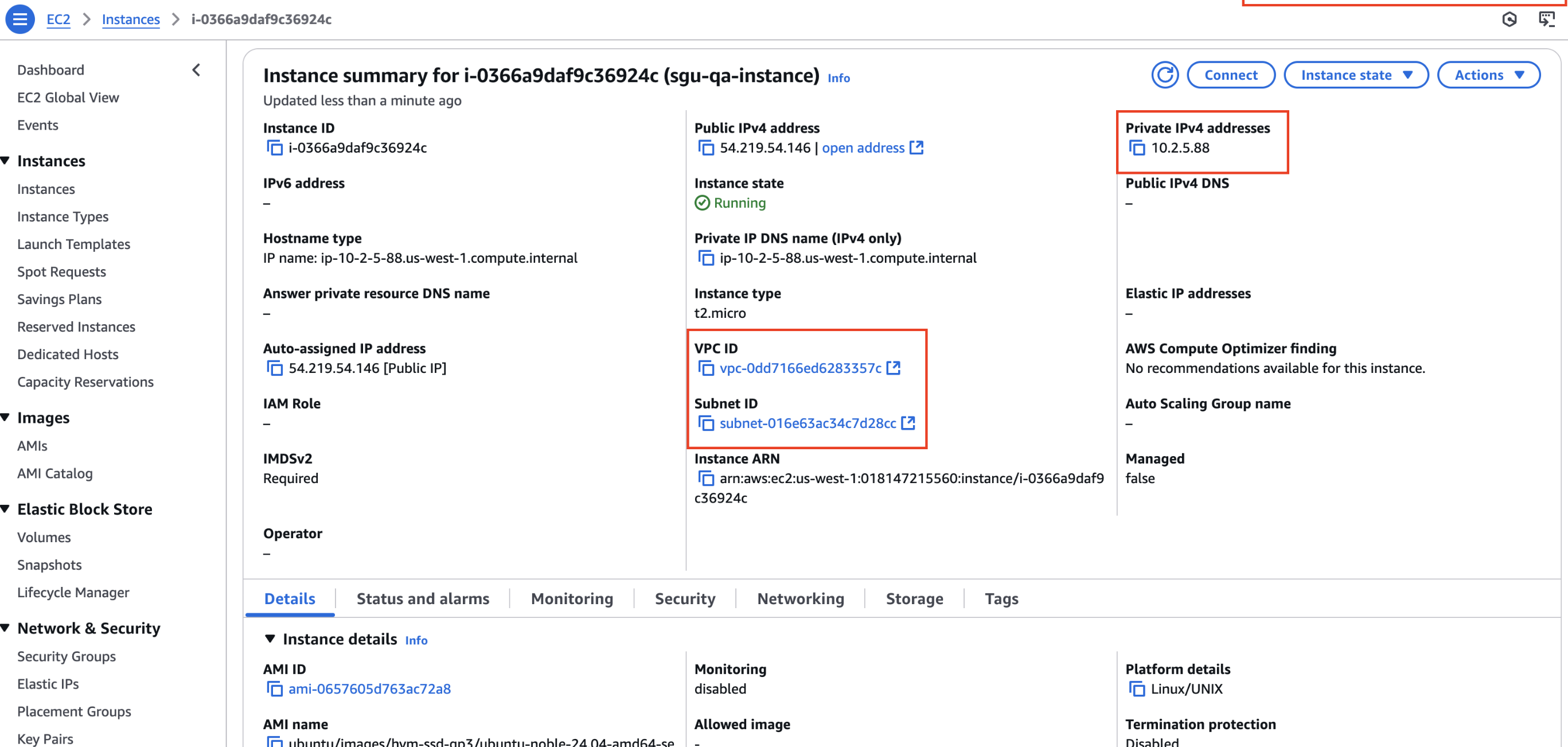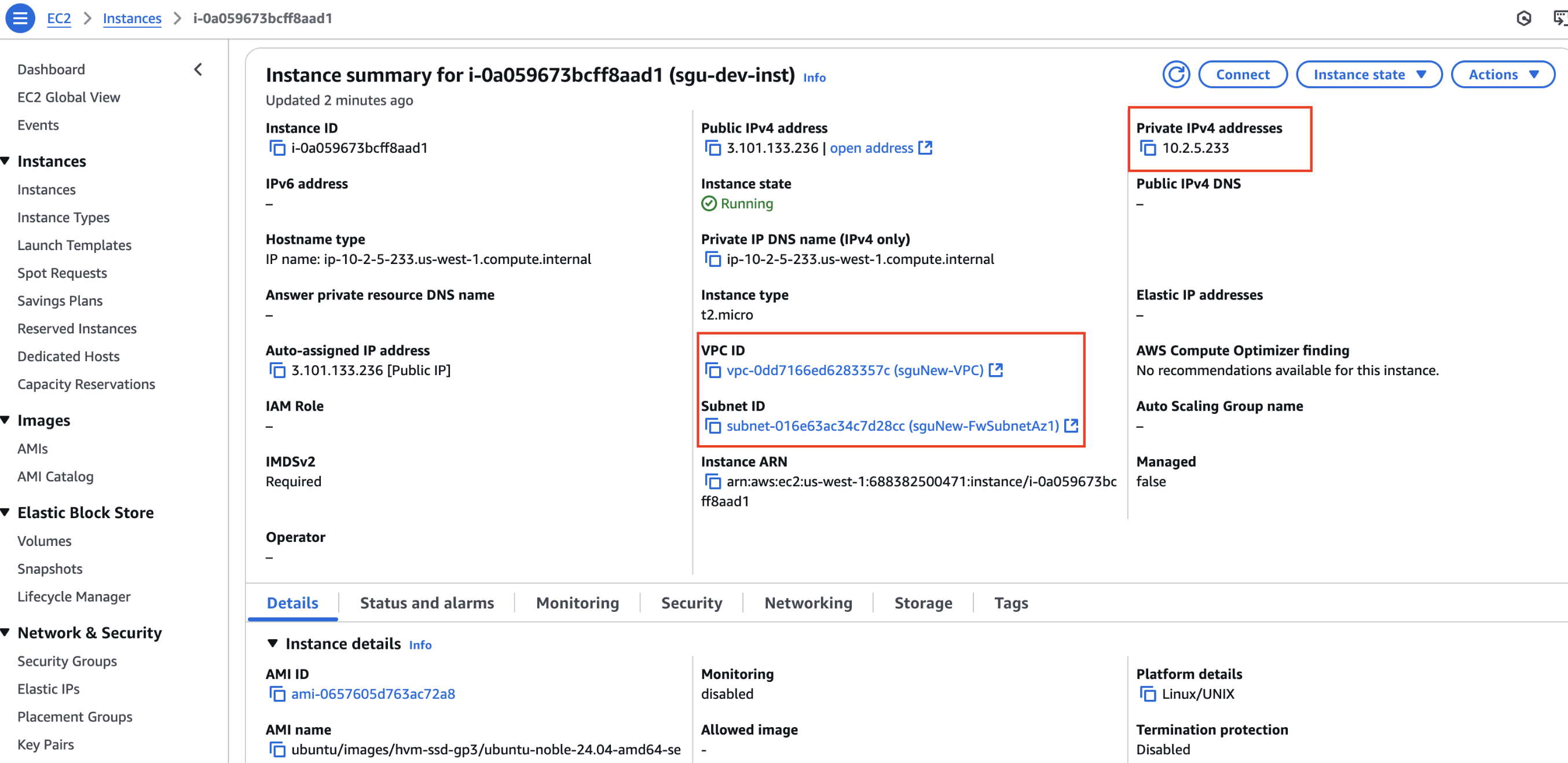 - After the monitoring retrieval process, verify that the AWS dashboard now displays VM2’s IP address.
