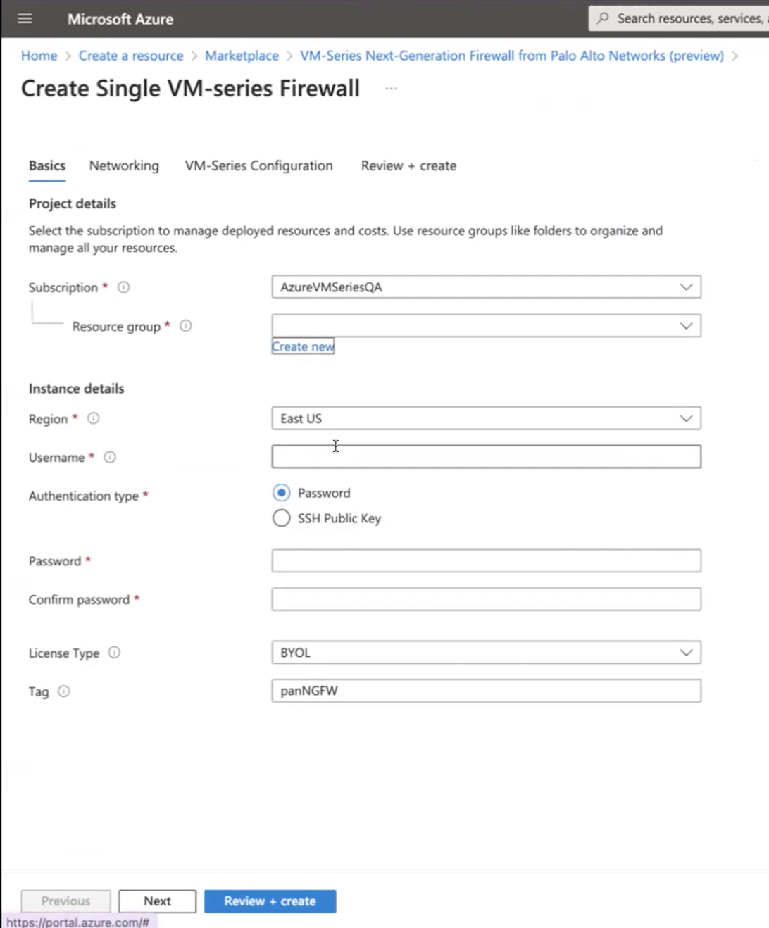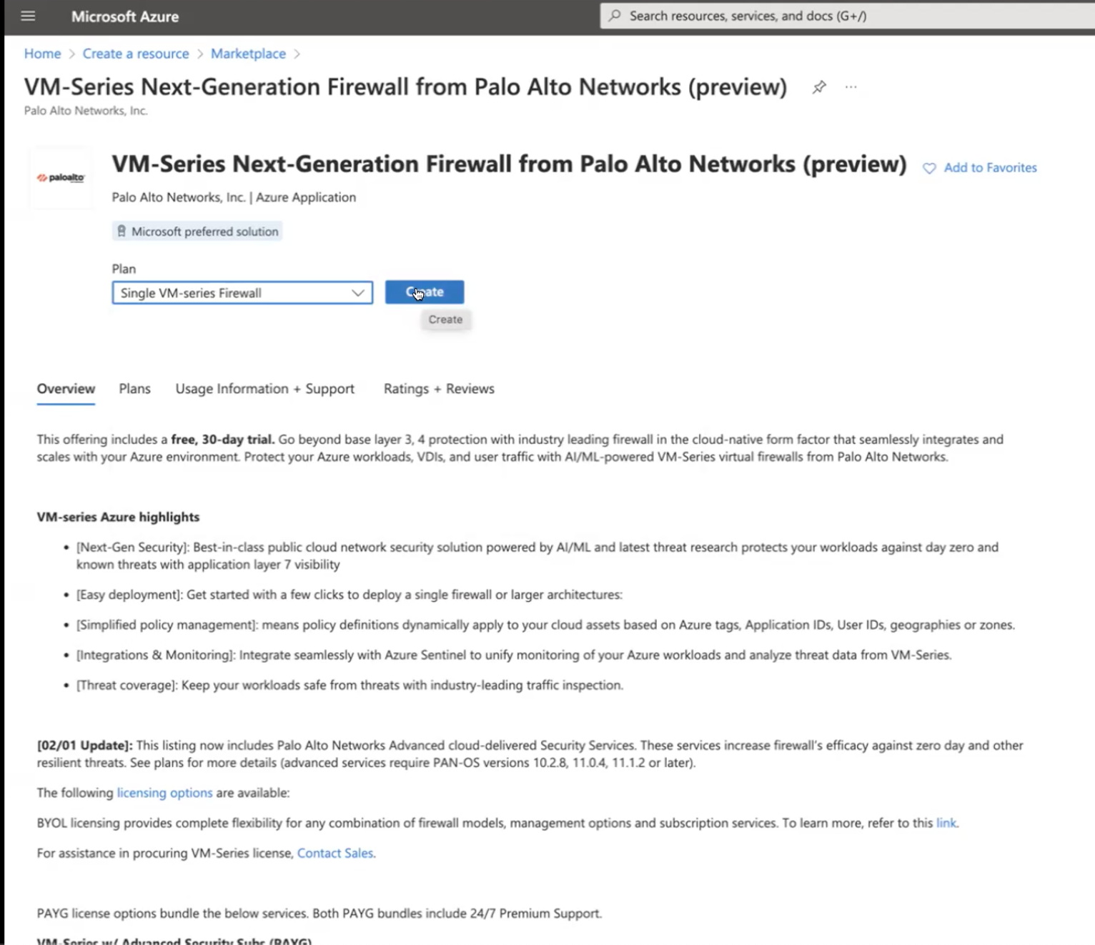 3. Select the VM-Series Next-Gen Single Firewall to Create a new VM-Series firewall.