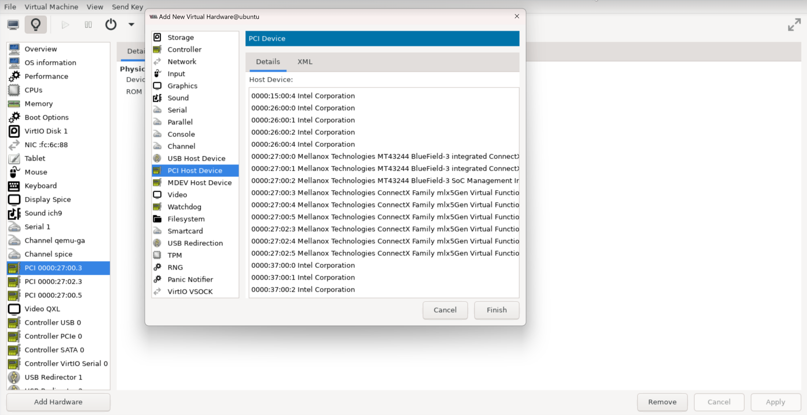 - Select Add Hardware, select VF0 of PF0, and click Finish.