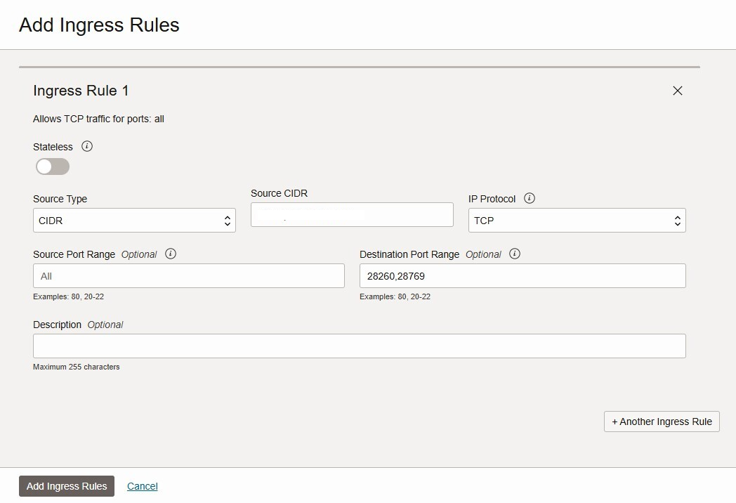2. Create security rules to allow the HA peers to synchronize data and maintain state information. By default, OCI allows ICMP traffic only. You must open the necessary HA ports.