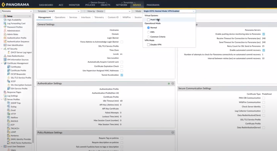 : Enable Multiple Virtual Systems Support on VM-Series in Panorama Console