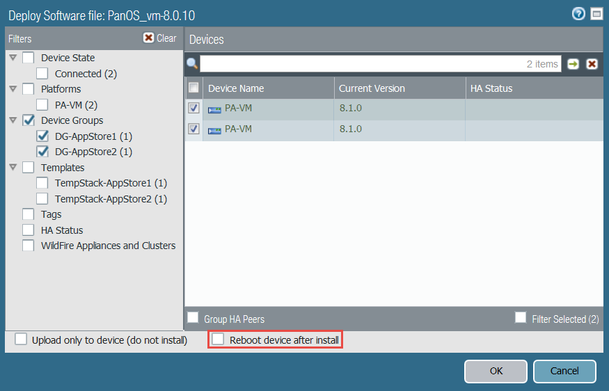 the software then click Install.Do not reboot the VM-Series firewalls after installing the new software image.