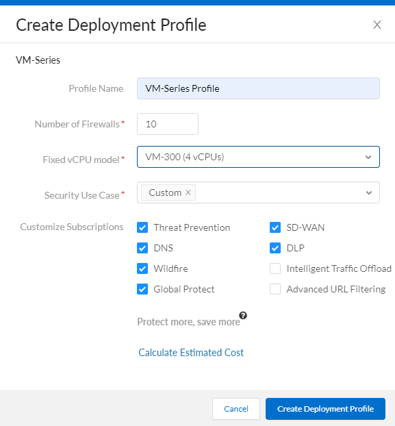 - Click Next. A subscription-only deployment profile can only be used on VM-Series firewalls with