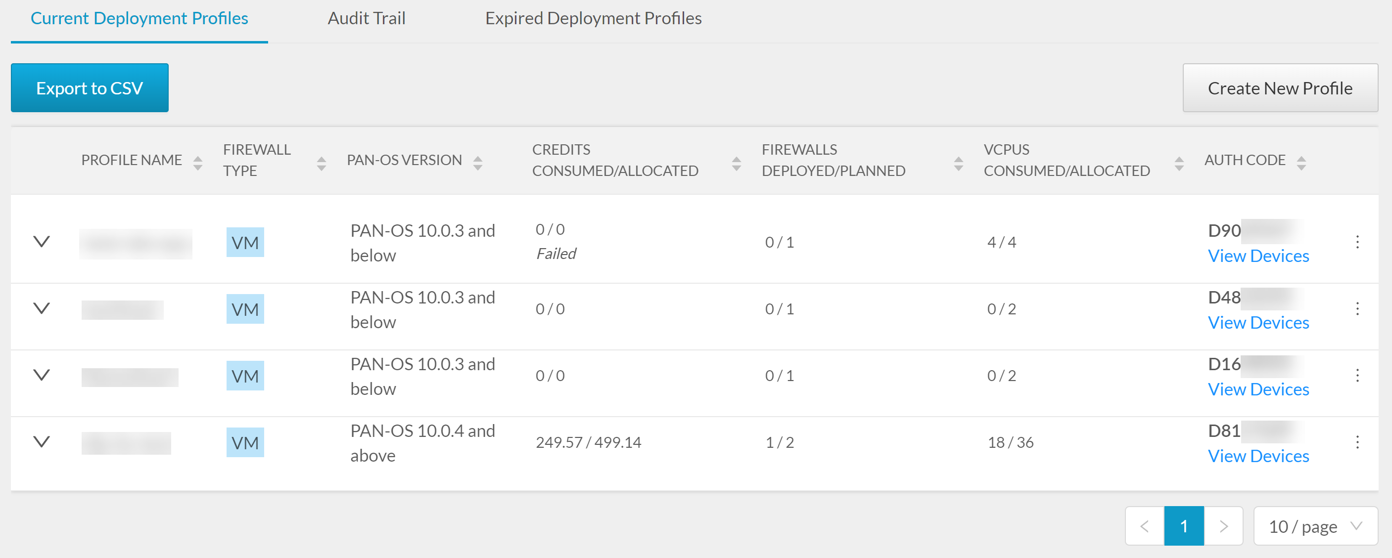 - In the CSP, Create a Deployment Profile with the same VM-Series model, number of vCPUs, and security subscriptions as the old fixed model license. You will use the auth code from this profile.