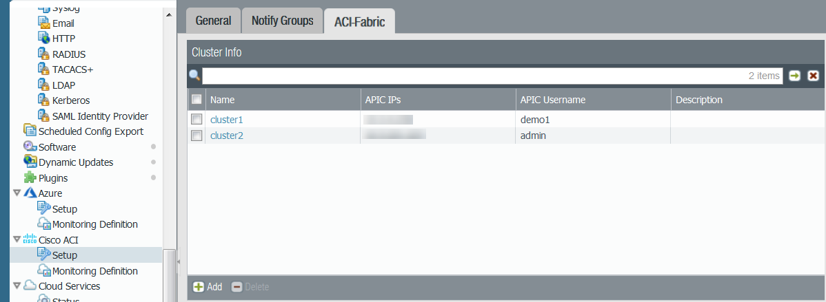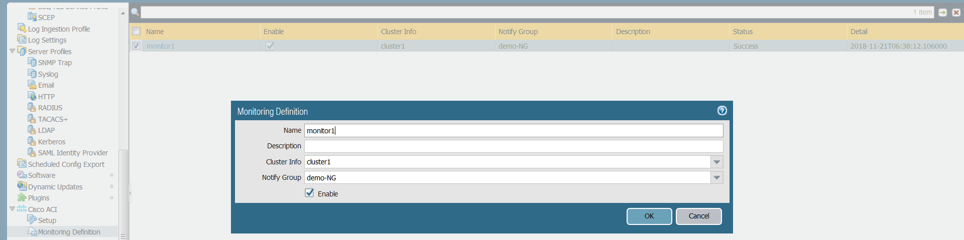 1. Select PanoramaCisco ACIMonitoring Definition and click Add.
