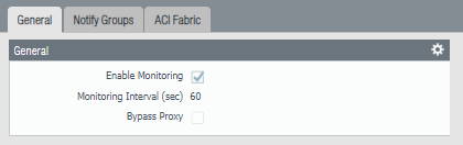 3. Set the Monitoring Interval in seconds. The monitoring interval is how often Panorama retrieves updated network information from the APIC. The default value is 60 seconds and the range is 60 seconds to 86,400 seconds (one day).