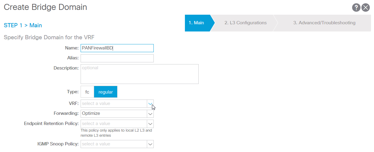- Right-click Bridge Domains and select Create Bridge Domain.