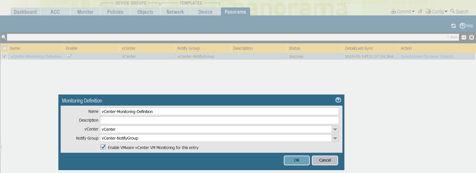 1. Select PanoramaVMware vCenterMonitoring Definition.