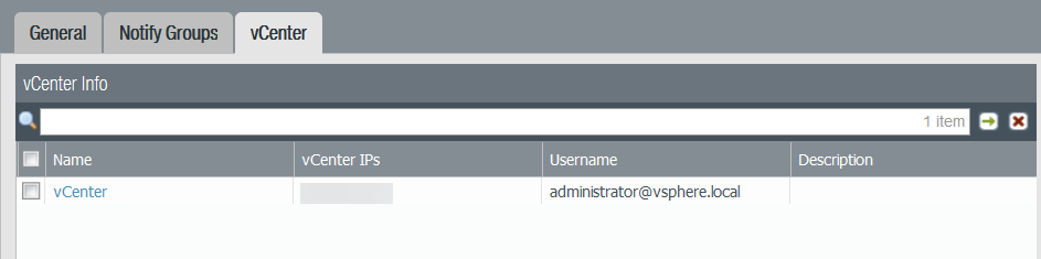 3. Select the vCenter and Notify Group.