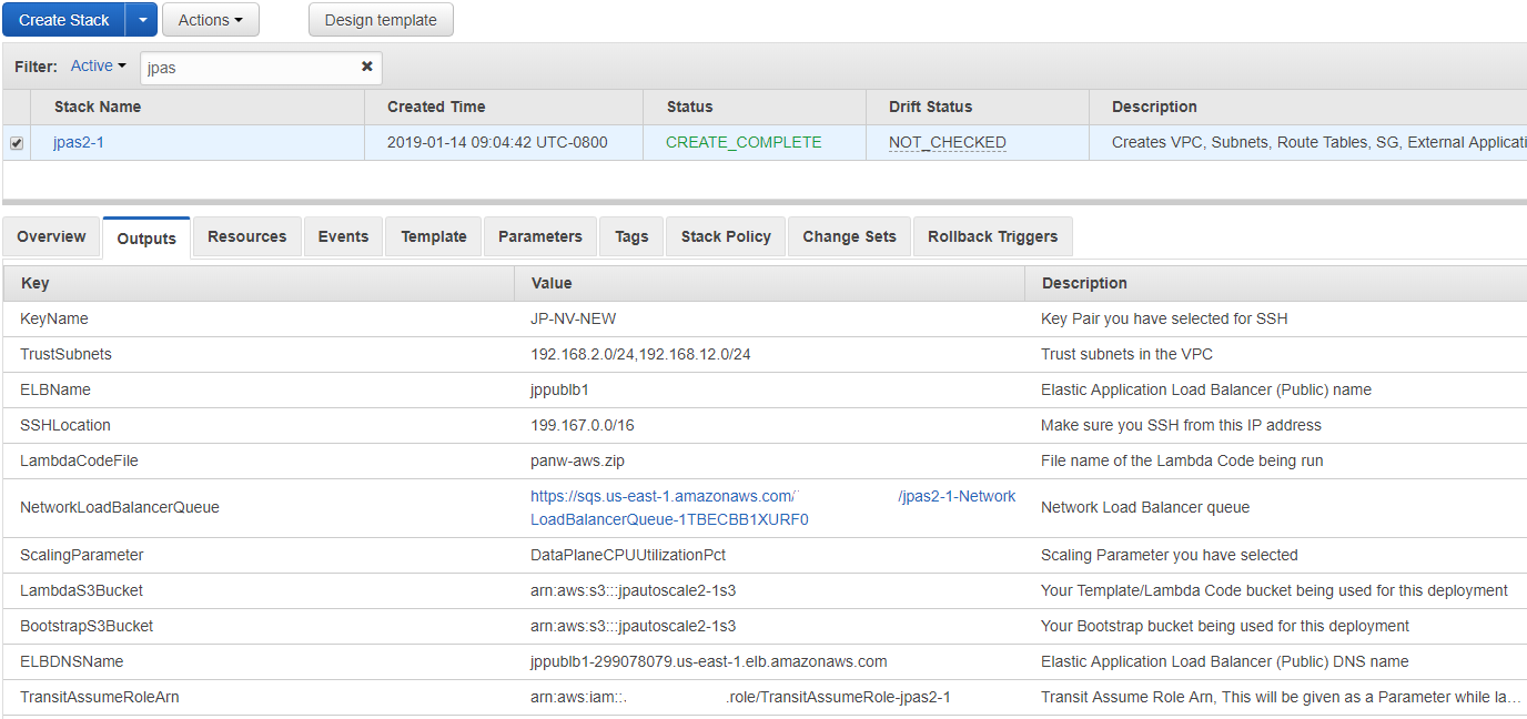 It may take up to 20 minutes for the firewalls to boot up and be available to handle traffic.When you are finished with a testing or a production deployment, the only way to ensure charges stop occurring is to completely delete the stack. Shutting down instances, or changing the ASG maximum to 0 is not sufficient. - Save the following firewall template information. You