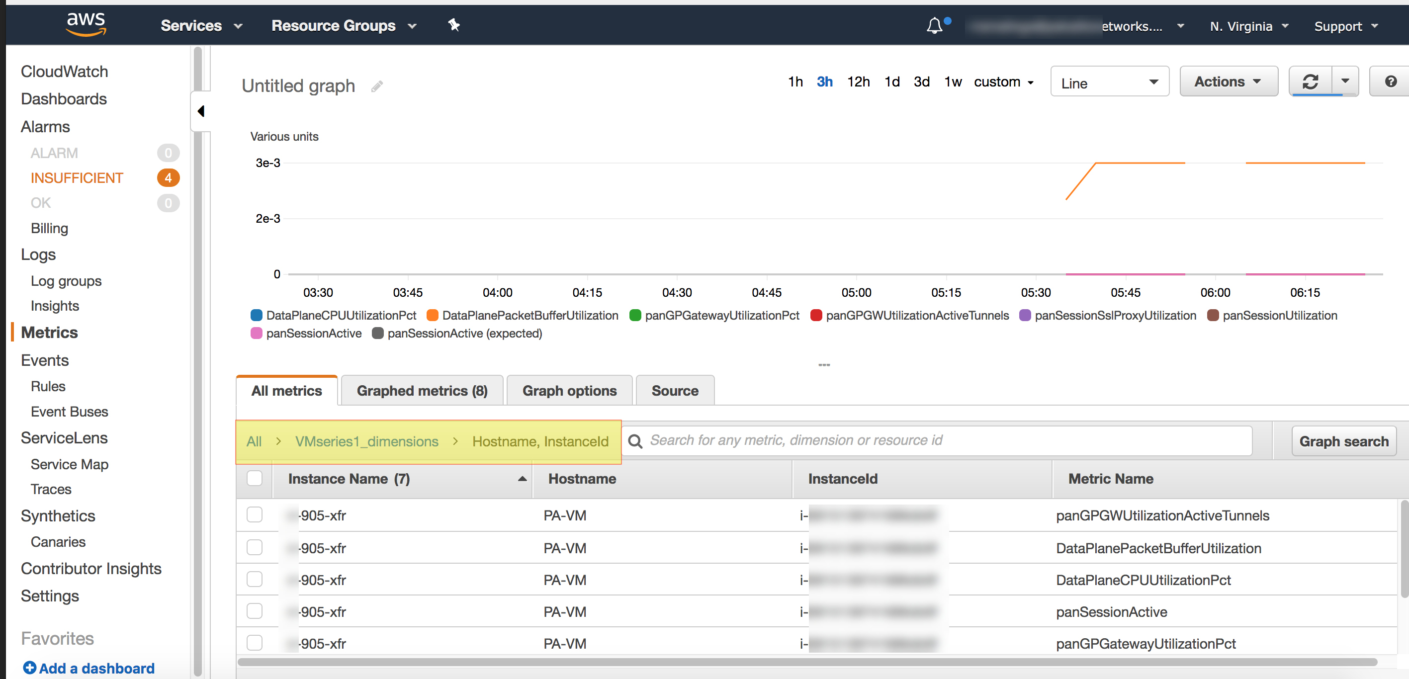 list.To filter by hostname or AWS Instance ID of a specific firewall, select _dimensions.