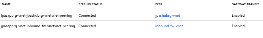 - Set up VNet peering between the application VNet and the Inbound firewall VMSS VNet, if they are in different VNets. When you use the sample application template included in the GitHub repository, VNet peering is set up for you.