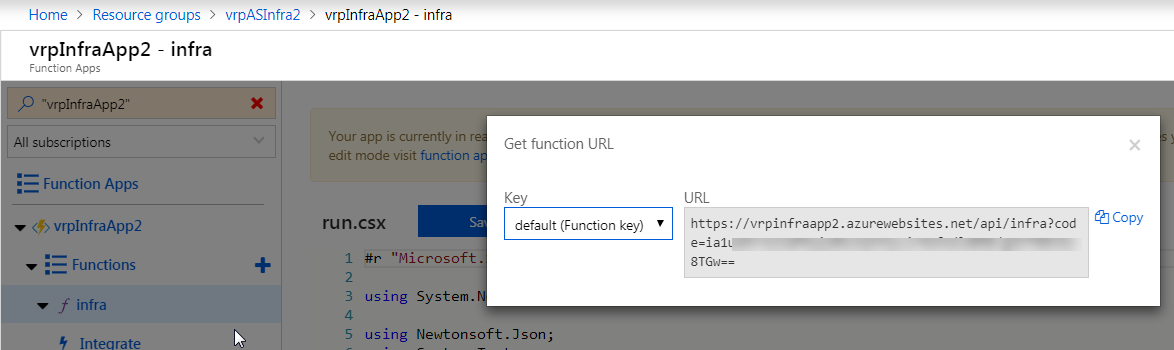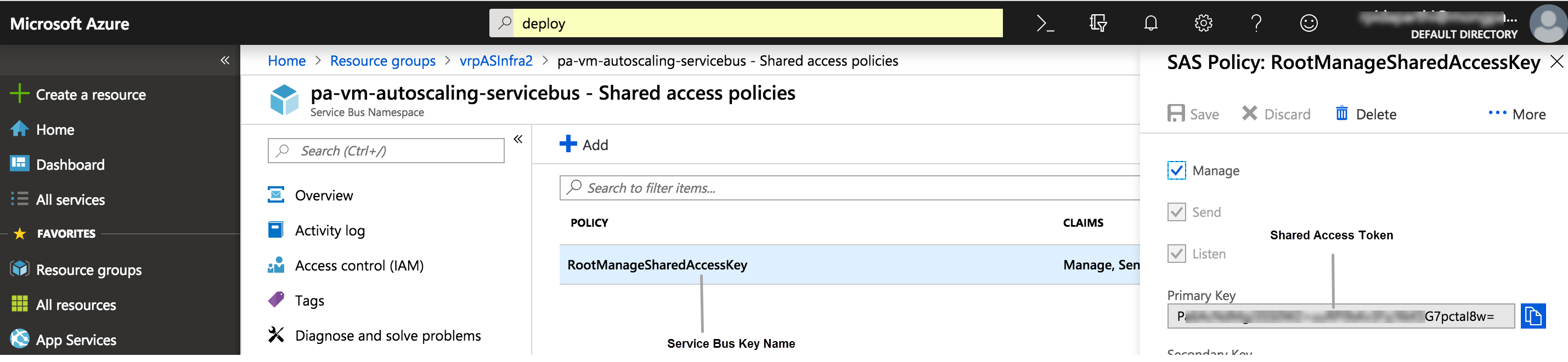 - Add the Shared Access Token and Service Bus Key Name— You need to get these from the Infrastructure template on the Azure portal.