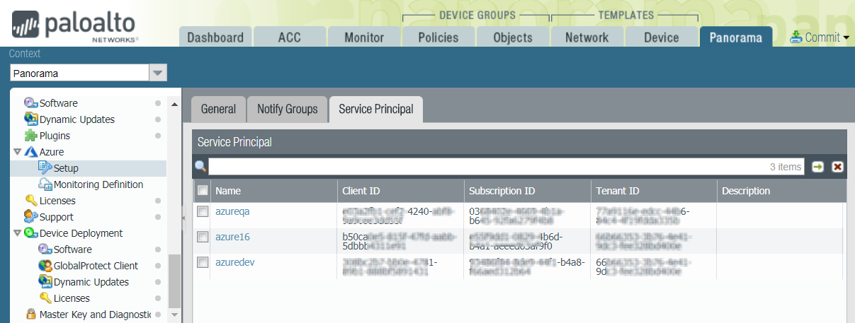Panorama.The Service Principal is the service account that you created on the Azure portal. This account is attached to the Azure AD and has limited permissions to access and monitor the resources in your Azure subscription. For this auto scaling deployment, make sure that the Service Principal has Contributor rights, at a minimum.