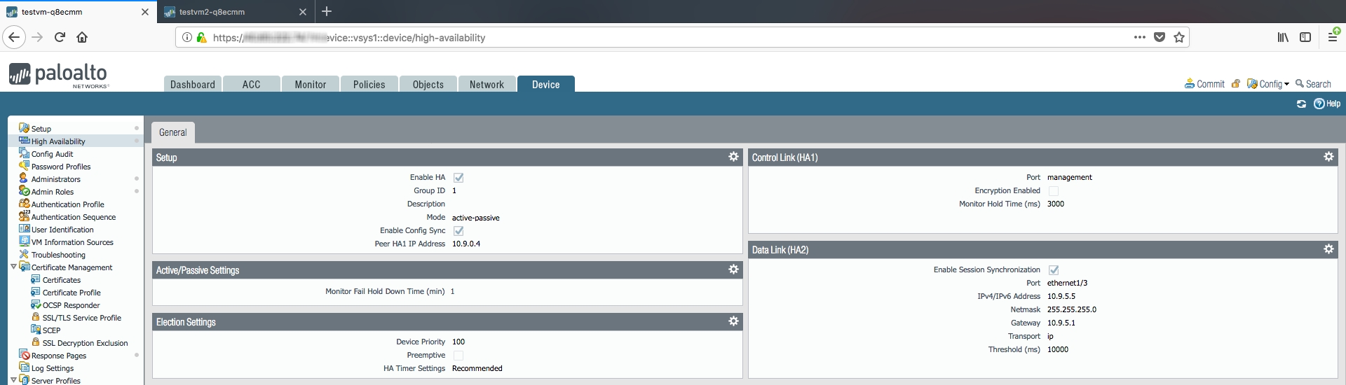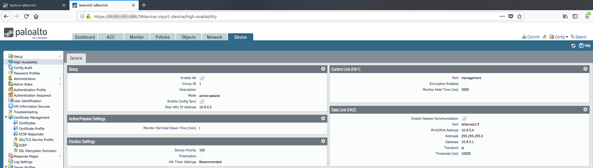 HA configuration, is encrypted with VM-Series plugin version 1.0.9
