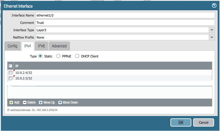 the Next hop of Primary IP address of the trust and untrust interfaces