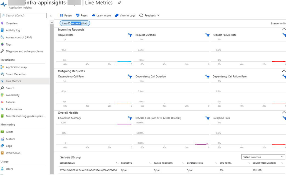 - Verify that you can view the metrics on the Azure Application