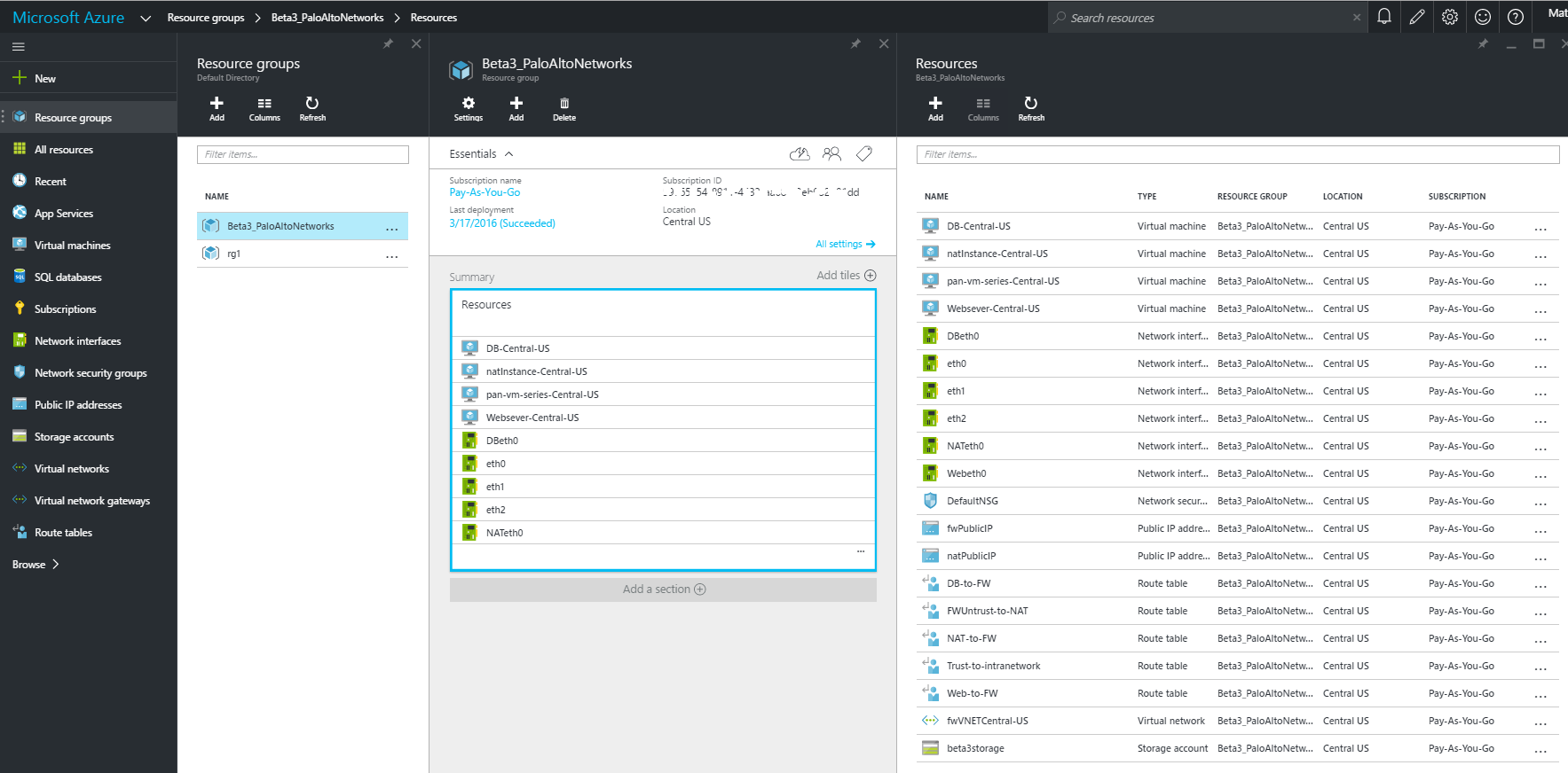 azure group deployment show "<YourResourceGroupName>" “<YourDeploymentLabel>“When the template is successfully deployed the ProvisioningStateis Running.If the ProvisioningStateis Failed, you must check for errors on the Azure portal at Resource GroupEvents. Filter for only events in the last one hour, select the most recent events, and drill down to find the errors.- Verify that you have successfully deployed the VM-Series firewall.