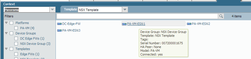 - Select the Device Group you created for managing your VM-Series on NSX-V firewall from the Device Group drop-down.