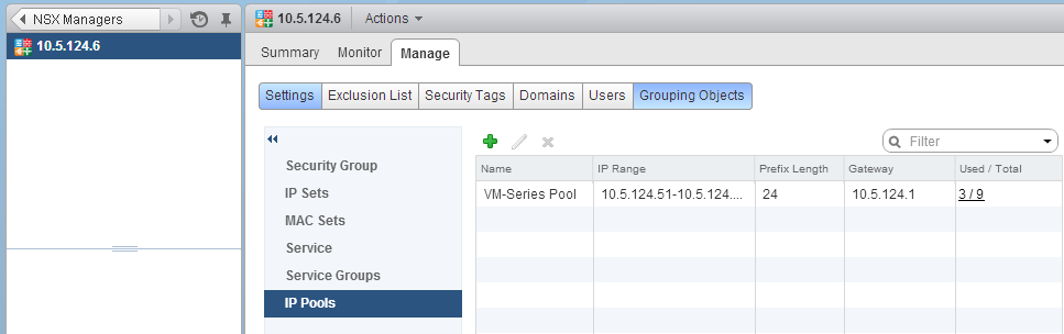 - In the Networking & Security Inventory, select the NSX Manager, and double click to open the configuration details of the NSX-V Manager.