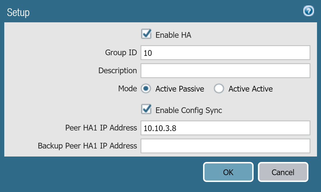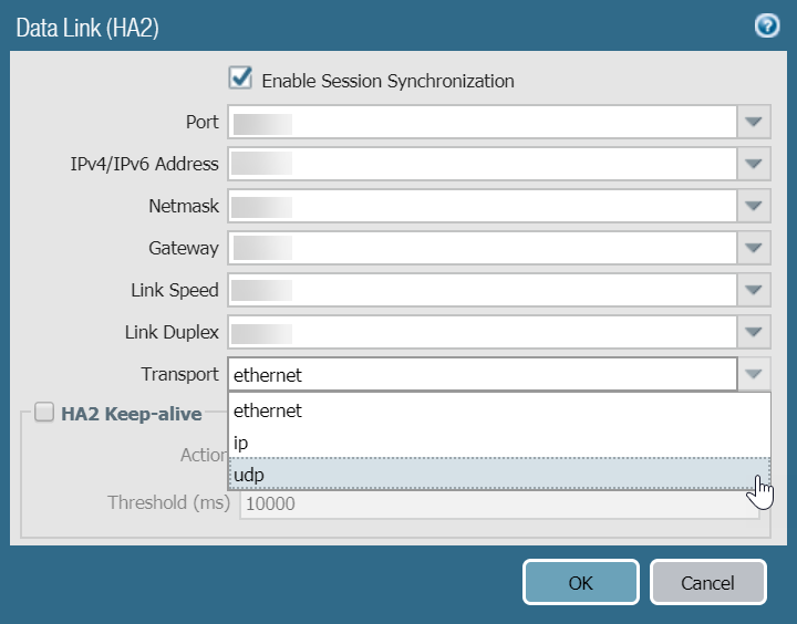6. Edit the Data Link (HA2) to use Port ethernet 1/1 and add the IP address of active peer and the Gateway IP address for the subnet.